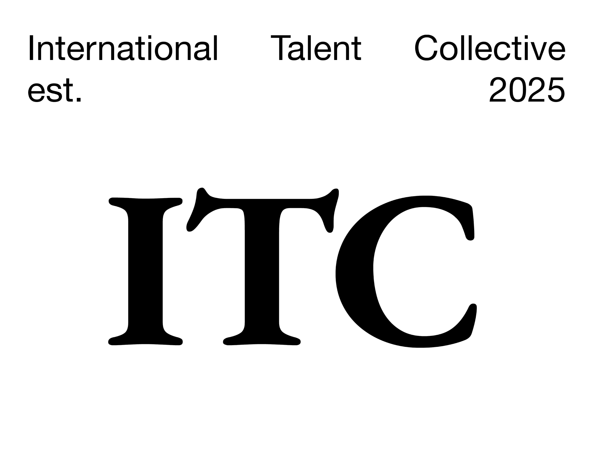 Text graphic with the letters 'ITC' in large black font and smaller text reading 'International Talent Collective est. 2025' at the top.